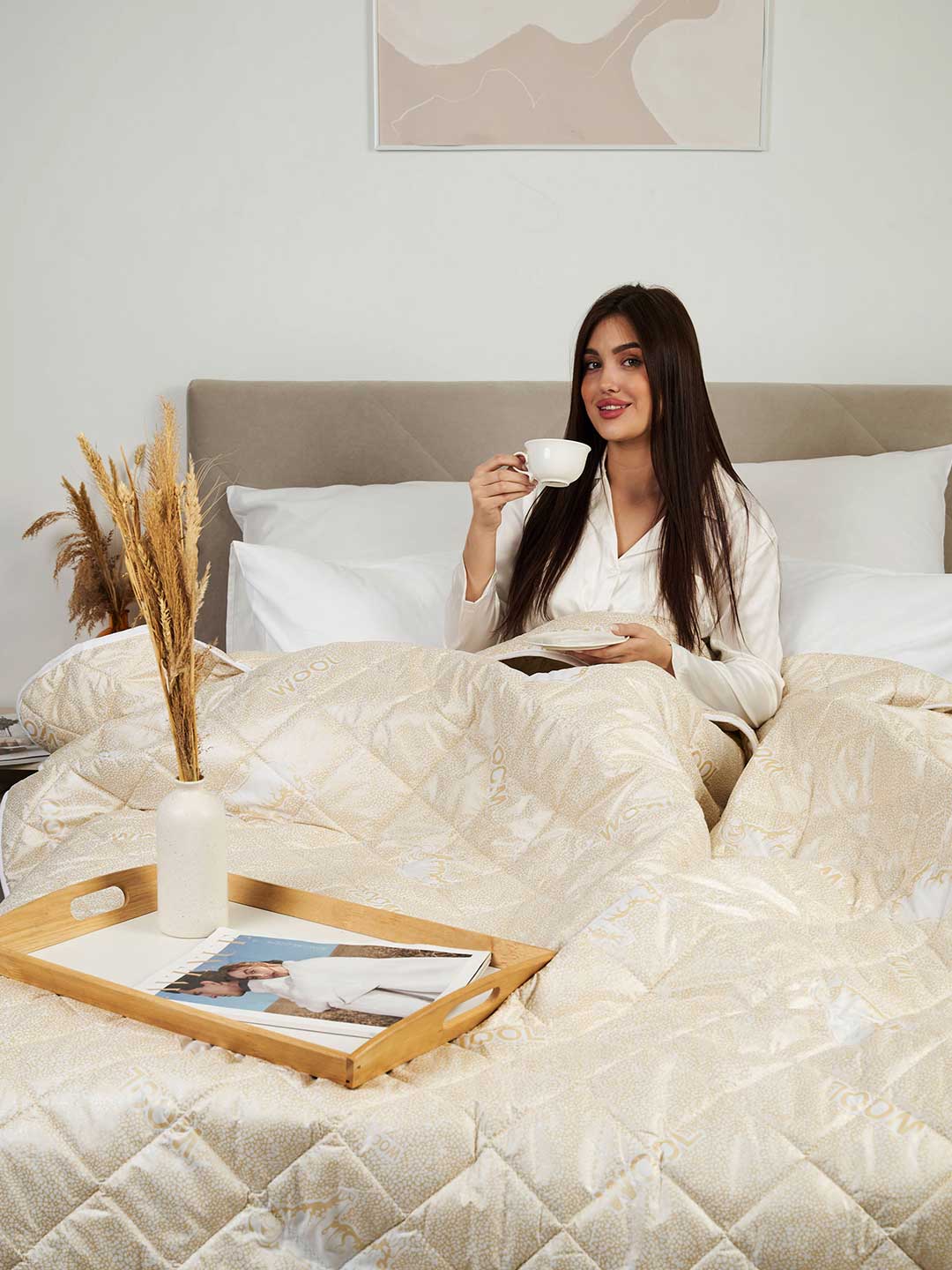 Во сне любой человек проводит достаточно большую часть своей жизни и поэтому очень важно, чтобы сон был комфортным. Одним из важных качеств товаров для сна - являются материалы, из которых они изготовлены. Одеяла с наполнителем - овечья шерсть отлично подходят для комфортного и качественного сна. Плотность наполнителя в изделии составляет 150 гр/м2.