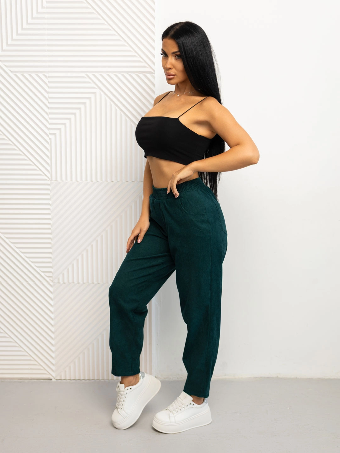 Брюки бананы вельветовые становятся актуальны с наступлением прохладной погоды. Это основа базового гардероба женщины и девушки. Брюки вельветовые со средней посадкой зауженные к низу заменят джоггеры, карго, клеш с разрезами , палаццо, широкие трубы и кожаные брюки. Идеально сочетаются с водолазками, а также блузками, худи, джемперами. Дополните их берцами и зимой вы не замерзнете. Деловые брючки с бархатной текстурой подарят уютное тепло и ощущение комфорта. Mодель подойдет любому типу фигуры и для любого возраста - для женщин, девушек, подростков.