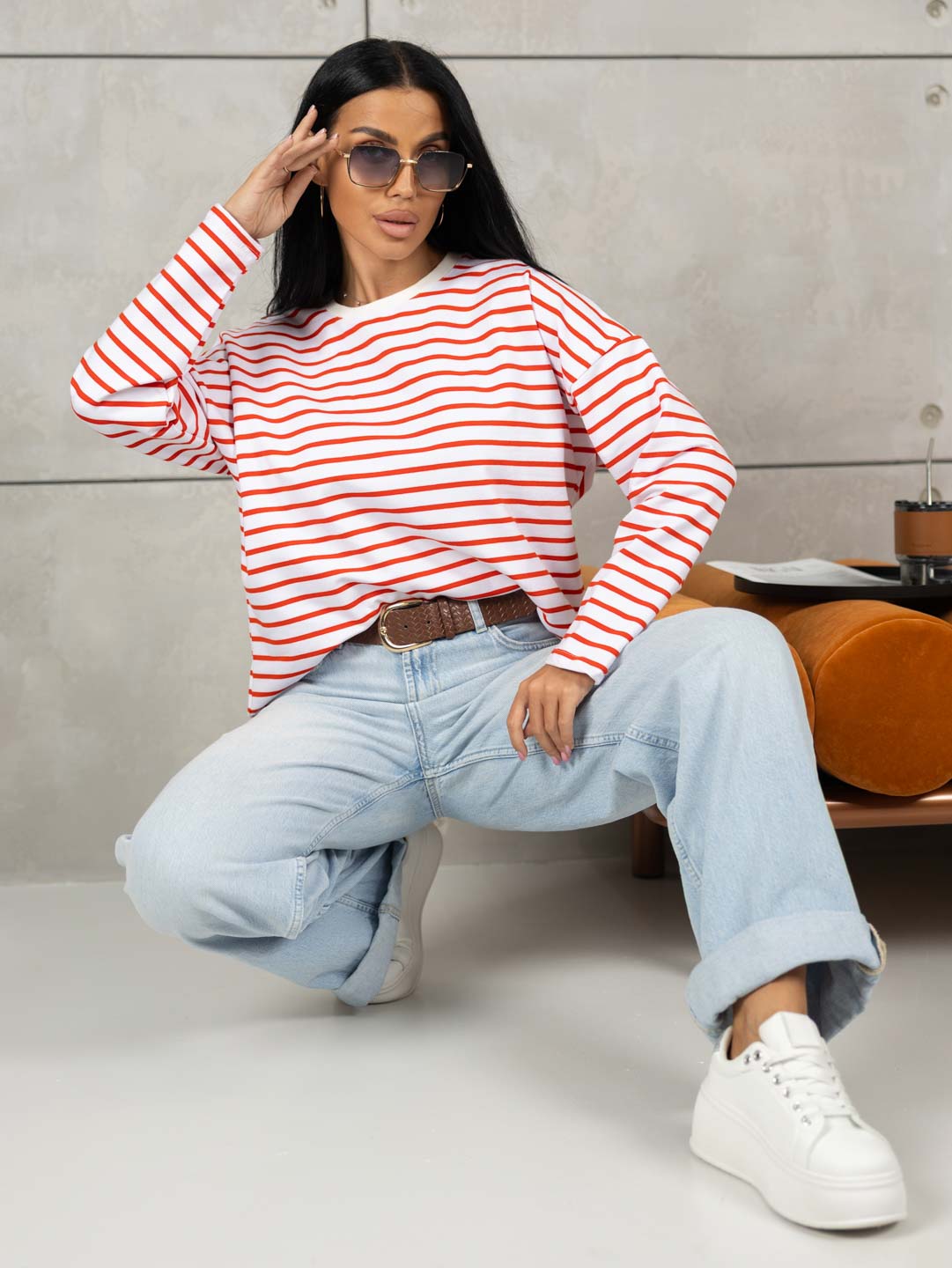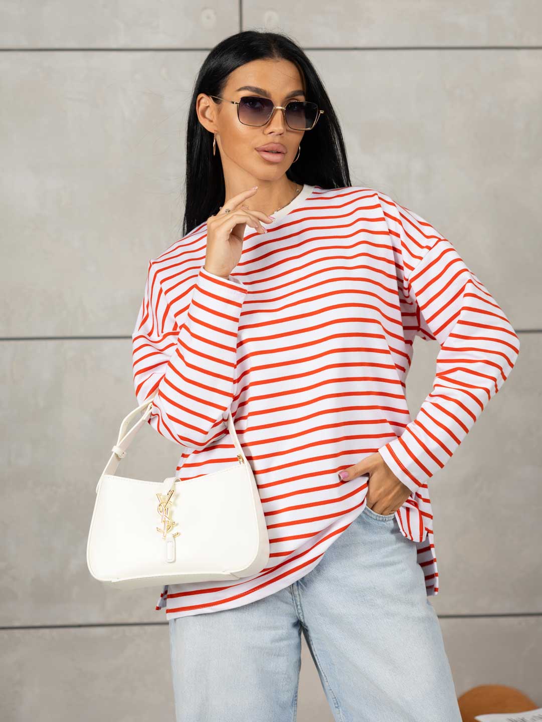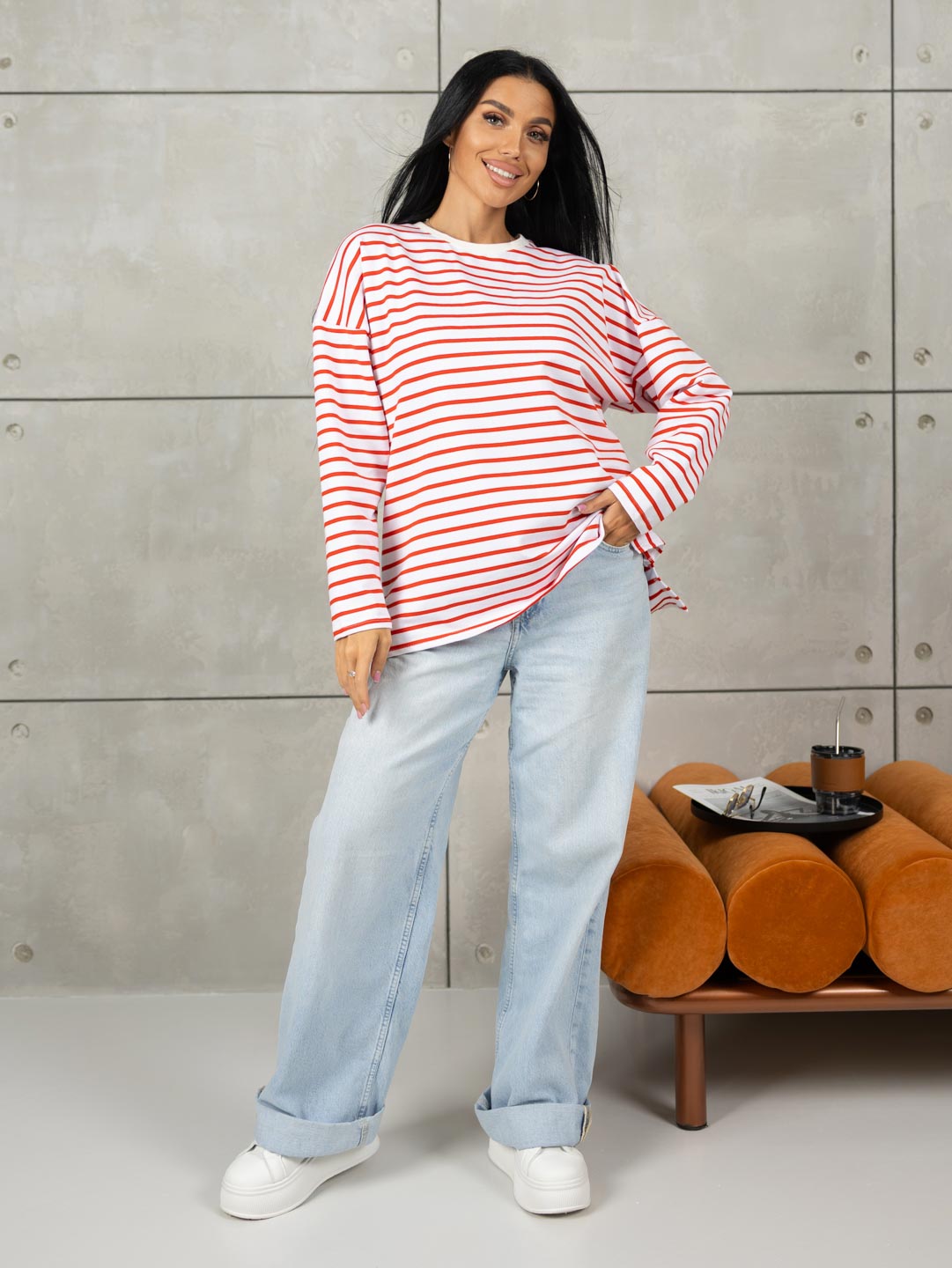 Базовая тельняшка идеально подойдет для составления множества модных аутфитов. Тельняшка в современном прочтении-это обязательно "оверсайз", качественный и невероятно комфортный трикотаж, удлиненные рукава и безупречная посадка! Модель выполнена из европейского трикотажного полотна, качества пенье.